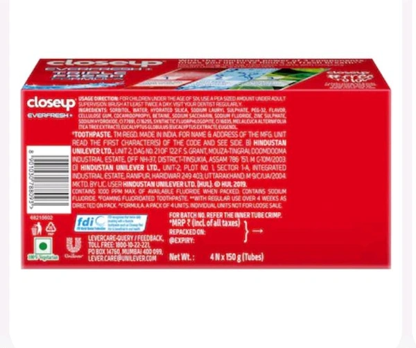 Clouseup Everfresh+Red Hot Toothpaste (150g×4)