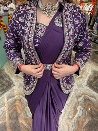 5572 Super Hit Ready To Wear Saree With Jacket Saree Heavy Diamond Satin Silk With Multi Thread Embroidery