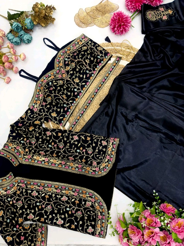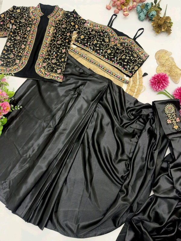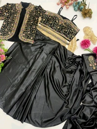 5575 Ready To Wear Saree With Jacket Saree Heavy Diamond Satin Silk With Multi Thread Embroidery Patch Work Butta