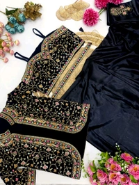 *👗Fabric Heavy Diamond Satin Silk With Multi Thread Embroidery Coding Sequence With Patch Work Butta*