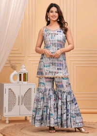Short straight style kurti with sharara and dupatta sets
