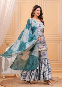 Sharara ___ length 39 ready Fabric muslin digital print full flair Sharara 5 meter flair ready with 2 tyre and gotta work