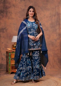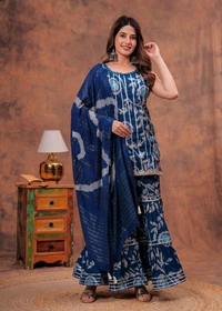 Short straight style kurti with sharara and dupatta sets
