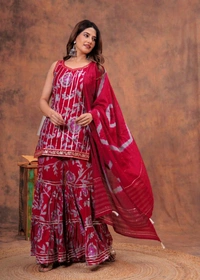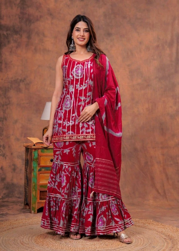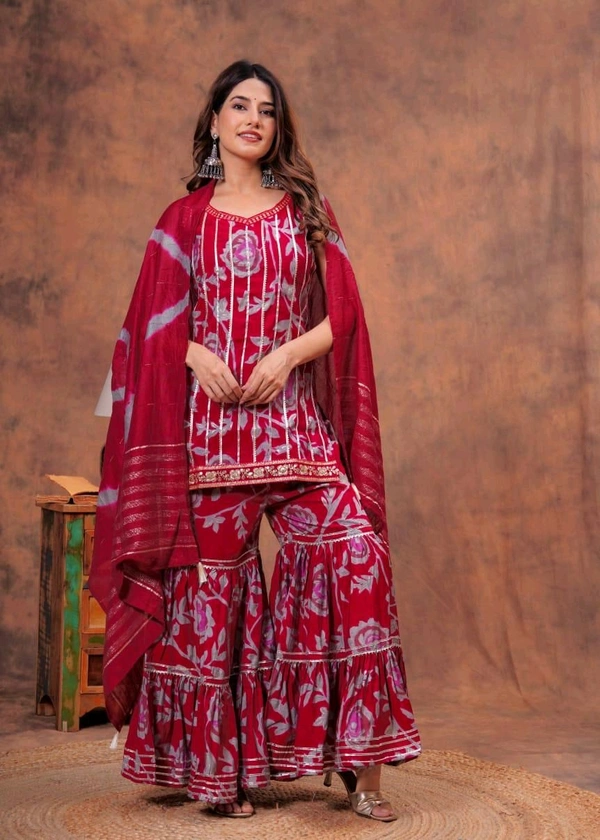 Short straight style kurti with sharara and dupatta sets