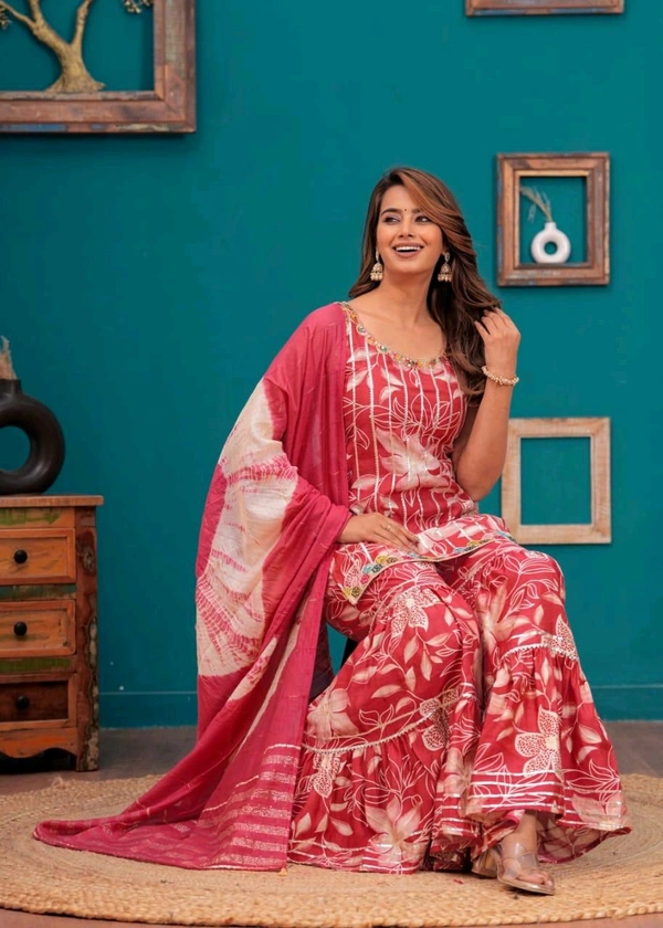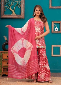 Short straight style kurti with sharara and dupatta sets
