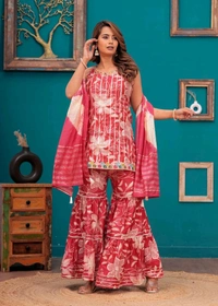 Sharara ___ length 39 ready Fabric muslin digital print full flair Sharara 5 meter flair ready with 2 tyre and gotta work