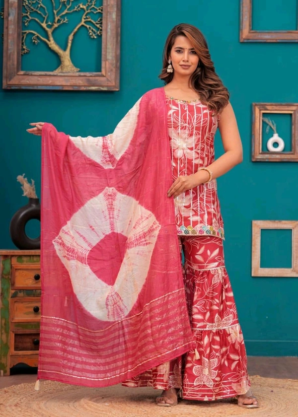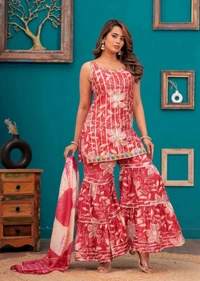 Sharara ___ length 39 ready Fabric muslin digital print full flair Sharara 5 meter flair ready with 2 tyre and gotta work