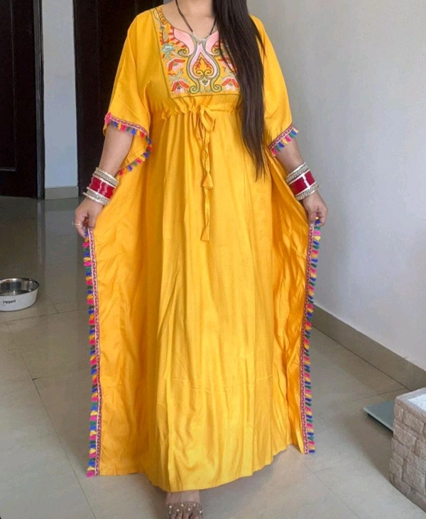5419 Designer solid Cotton REYON Kaftan With embroidery Work