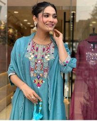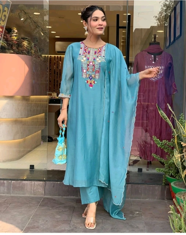 5563 New Collection latest collection Chanderi* suit with cotton pant naazmin dupatta- beautiful embroidery