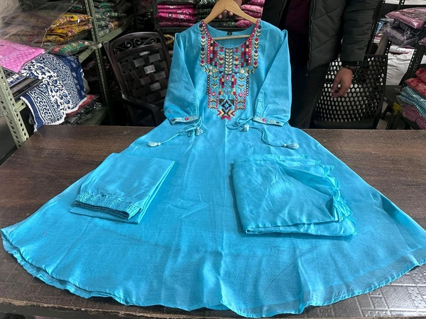 5563 New Collection latest collection Chanderi* suit with cotton pant naazmin dupatta- beautiful embroidery