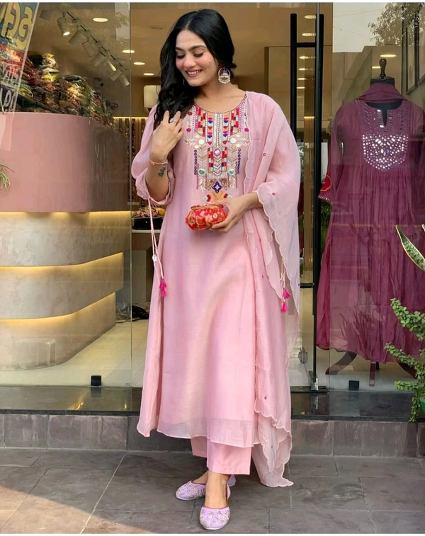 5563 New Collection latest collection Chanderi* suit with cotton pant naazmin dupatta- beautiful embroidery