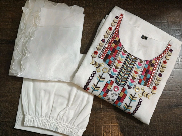 *Febric - Kurti mul chanderi in side aatich lining with cotton pant and dupatta naazmin*