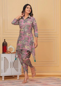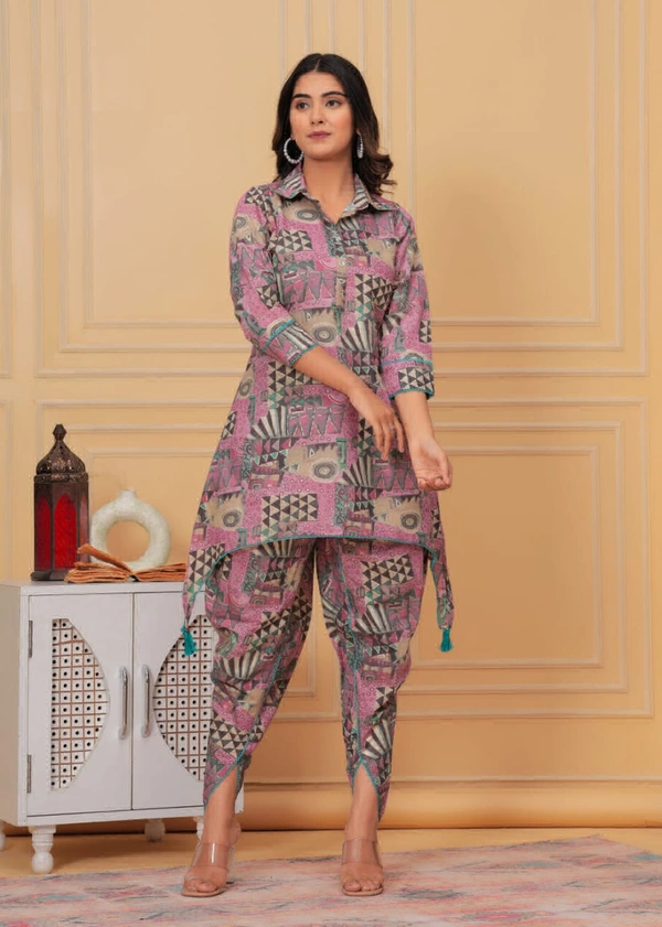 2114 Muslin Kurti With Dhoti Pant Cord Set