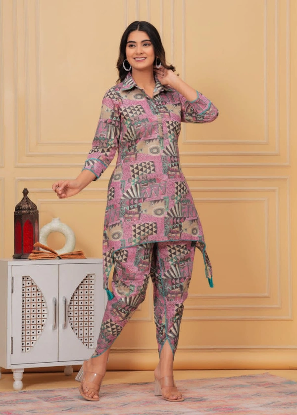 2114 Muslin Kurti With Dhoti Pant Cord Set