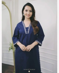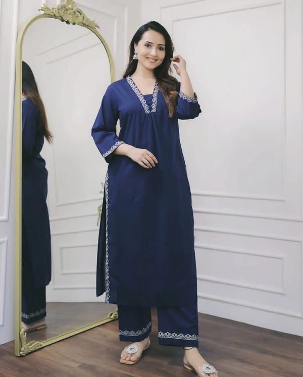 Styles should be evergreen and that’s exactly what it is! Reyon comfort meets amazing silhouette with our newly lunched Kurta Sets. It is so easy breezy and chic, crafted with beautiful thread embroidery. Paired with matching pants which is highlighted with minimal embroidery. A must’ve for your daily rituals
