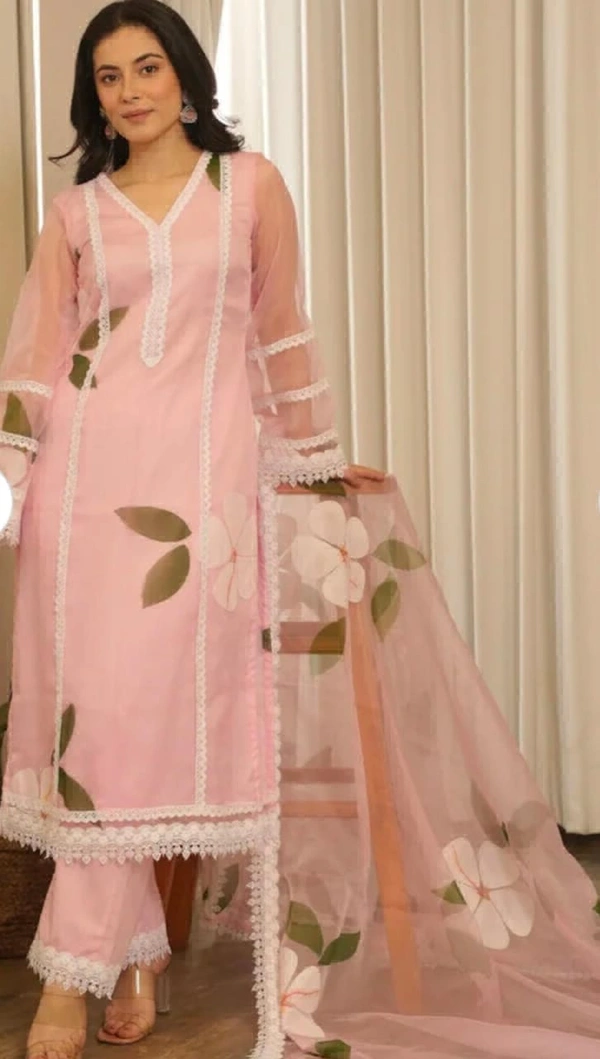 π PURE ORGANZZA SLEEVES AND LACE WORK ON SLEEVES.