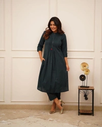 *Premium Reyon sulv kurta with pleated pattern with katha work*