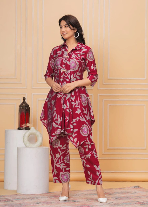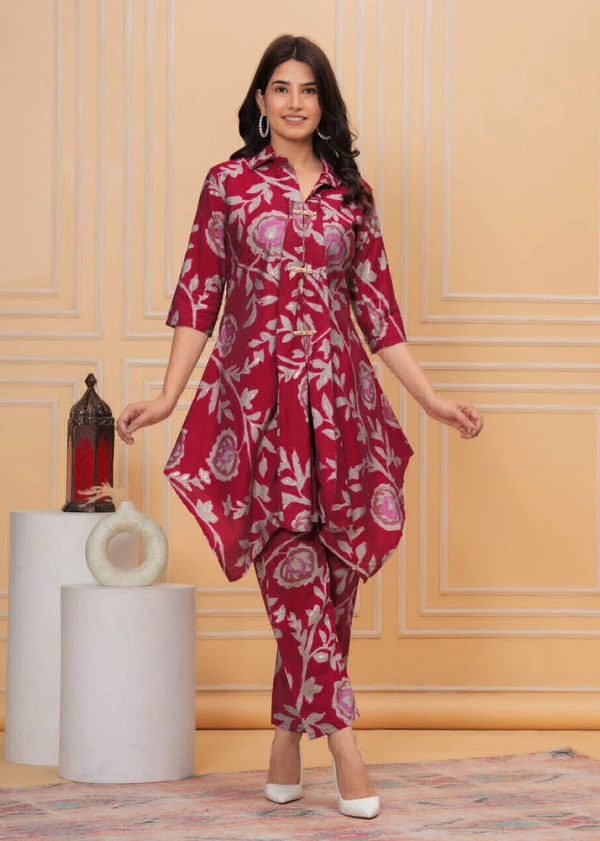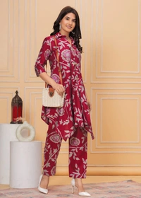 MUSLIN PARTY WEAR coller tie pattern CORD SET