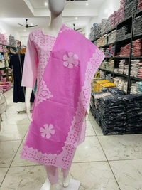 ♦️ *Pure cotton applique cut work kurti with cotton lining paired with applique cut work cotton organdi dupatta and pure cotton pants*