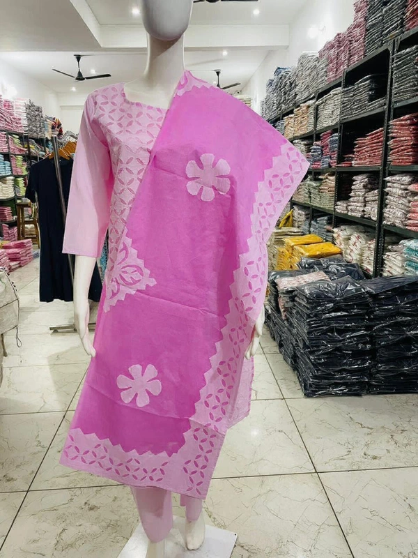 ♦️ *Pure cotton applique cut work kurti with cotton lining paired with applique cut work cotton organdi dupatta and pure cotton pants*
