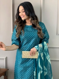 You will be so much in love with our this handloom green outfit for. combinations of self zari thread handloom soft south cotton fabric and beautiful printed dupata add a unique vibe.