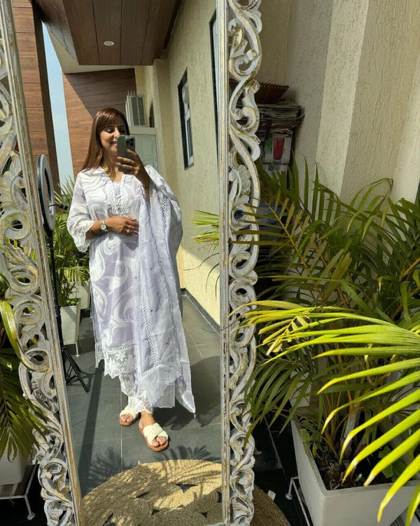 Festival season is around the corner and we have launched our new collection. Featuring beautiful suit set which is decorated with finest Embroidery work and prints. If is made in premium cotton fabric. It is paired with matching pants and dupatta.