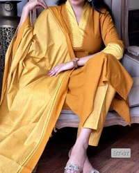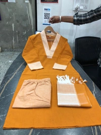 You will be so much in love with this south handloom outfit for combinations of temple border self thread handloom butti south cotton kurta and south cotton pant paired with south cotton duppata self thread self weaving temple border add a unique vibe.