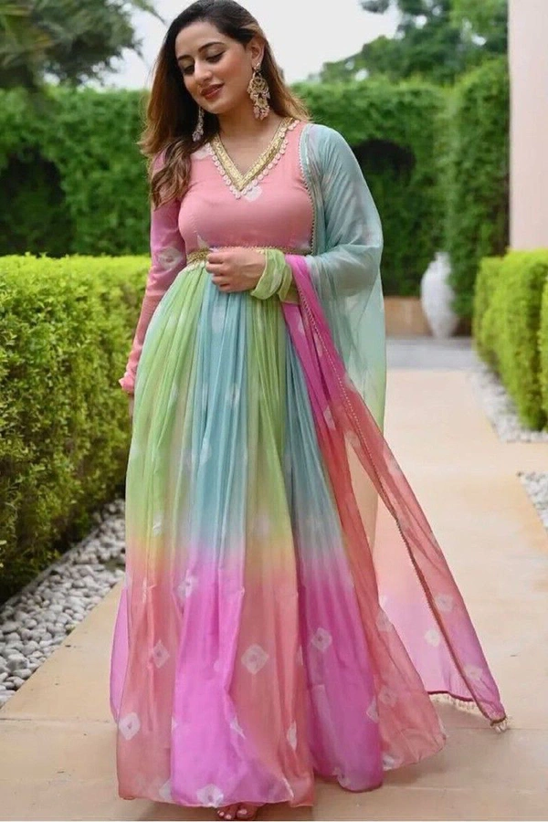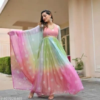 *Fabric* :- Tabby Georgette *work*:- Digital print with Fancy Lace