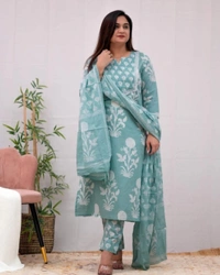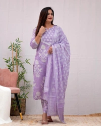 Festival season is around the corner and we have launched our new collection. Featuring beautiful suit set which is decorated with finest handwork and prints. If is made in premium cotton fabric. It is paired with matching pants and dupatta.