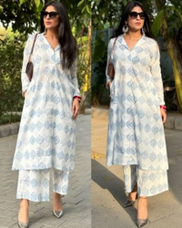 *Pure Cotton A line Kurti with Stylish Collar Pattern Fromat Open Style & Printed Cotton Pant*