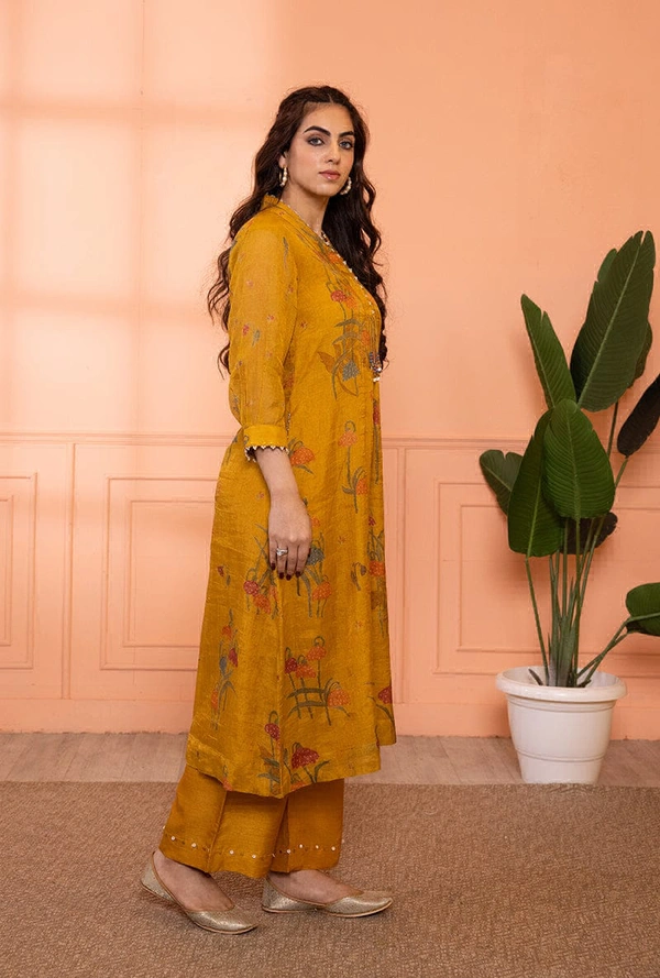 This 2-piece set features a high-collar kurta with pearl less detailing on the neck and beaded tassels in the front. It is paired with bottoms adorned with pearl and shell detailing.