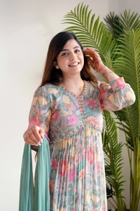 *It is paired with Round Gown matching pants and chiffon dye dupatta For all the stylish ladies out there, who want something simple, sophisticated and traditional.*