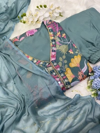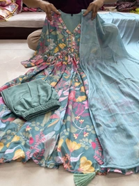 *Mehera Green Floral Alia Cut Suit Set With Lining Is An Inner Layer Of Fabric*