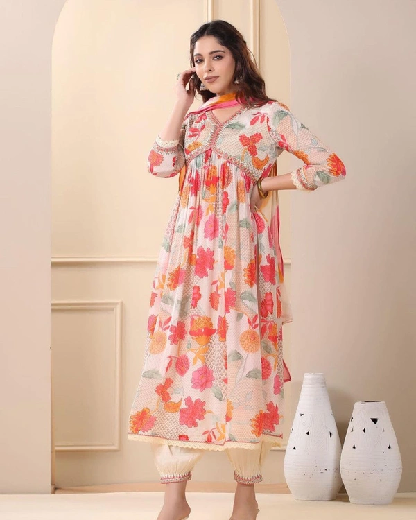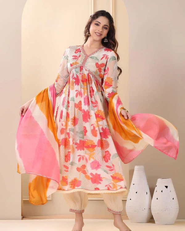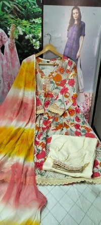 *Rayon mirror embroidery work on yoke & dupatta border*
