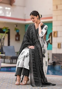 *For a Festive gathering, you'll can opt for black white ANGRAKHA set which is decorated with finest self .It is paired with matching dupatta🌸*