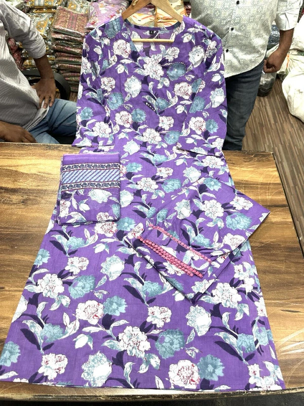 _New straight kurta set with new style in saganeri block print_