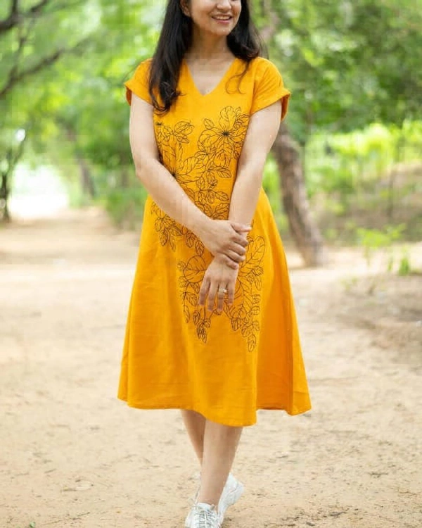 Keep it simple in our stylish cotton flex and embroidery combination cotton Handloom one piece middi outfit with relaxed fitting.
