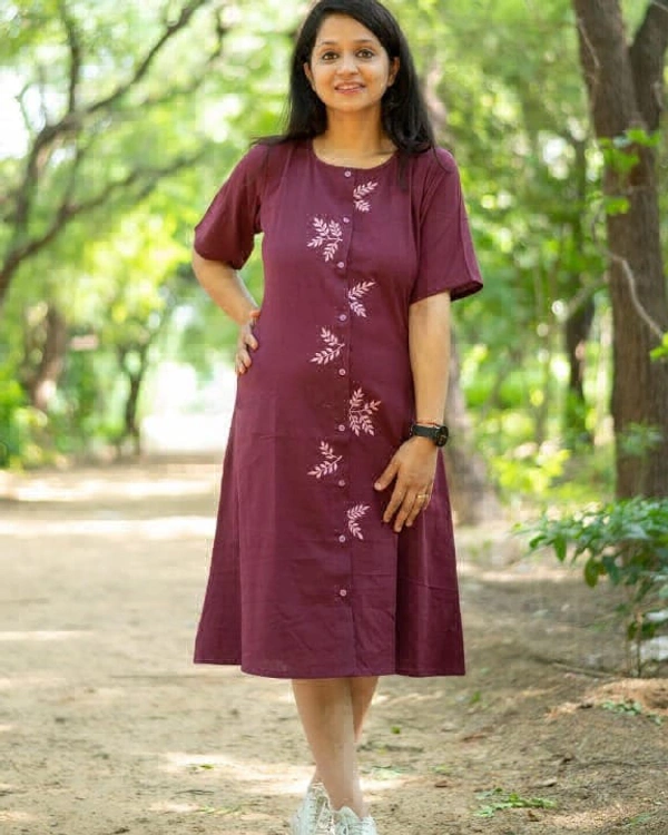 Keep it simple in our stylish cotton flex and embroidery combination cotton Handloom one piece middi outfit with relaxed fitting.