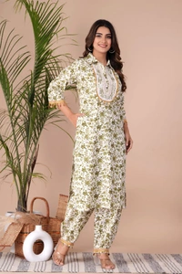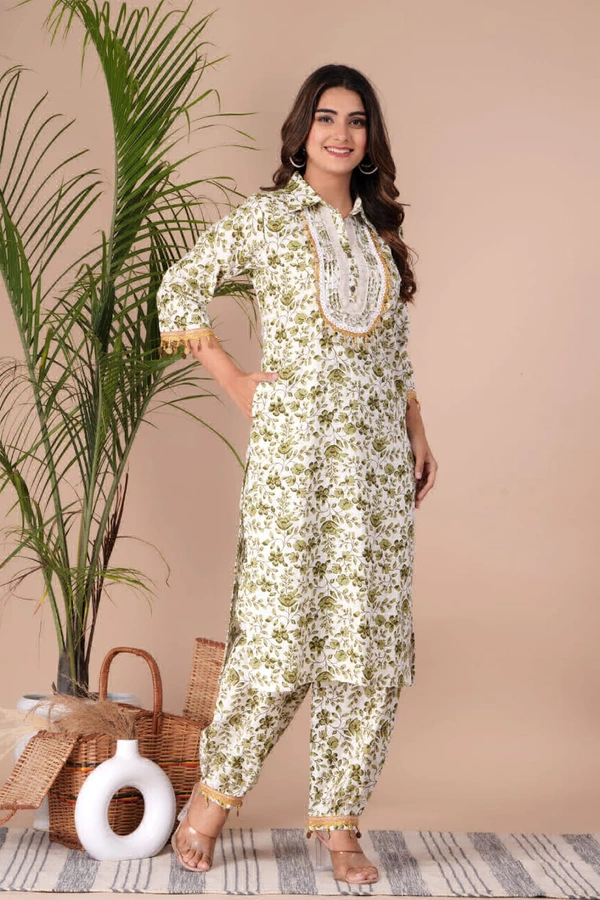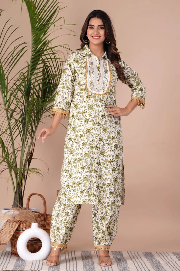Go and ready this beautiful collection of Gorgeous kurta with paired matching afgan pant made in pure cotton flex super fabric with patti work on all over kurti
