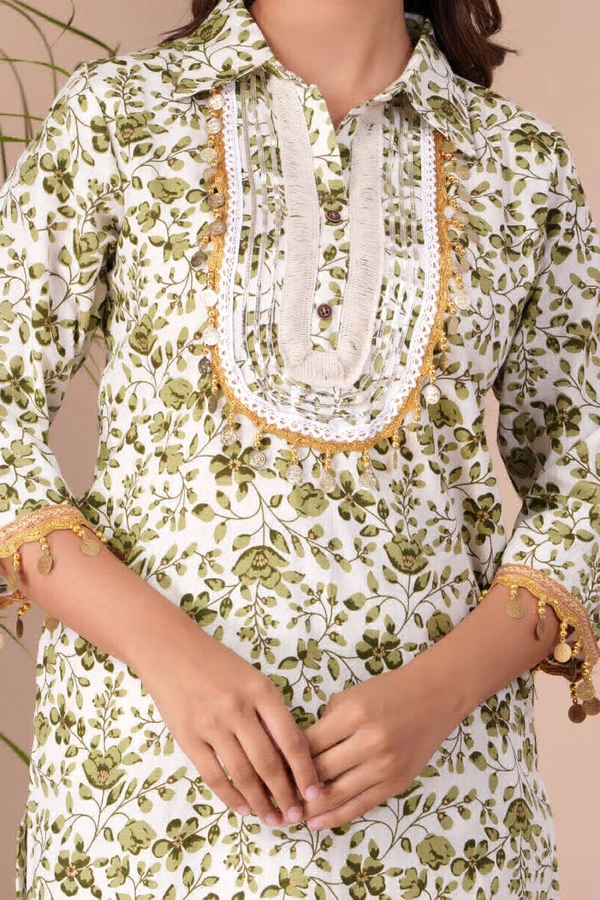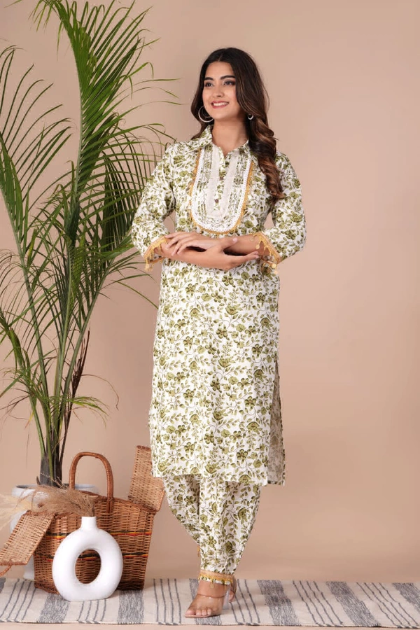 Go and ready this beautiful collection of Gorgeous kurta with paired matching afgan pant made in pure cotton flex super fabric with patti work on all over kurti