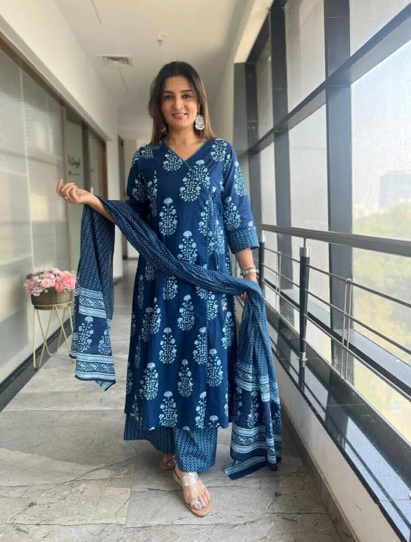 New straight kurta set with new style in indigo print_