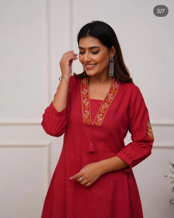 *ORIGINAL FULL EMBROIDERY STRAIGHTCotton KURTI*π