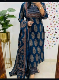 *🌹🌹Pure fine Cotton fabric Kurti with Pant with cotton 100-100 Dupatta*🌹🌹Nack Hand work
