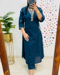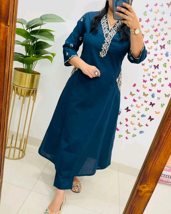 5619 Designer Cotton* With Heavy thread Kurta pant Embroidery work side Pockets...