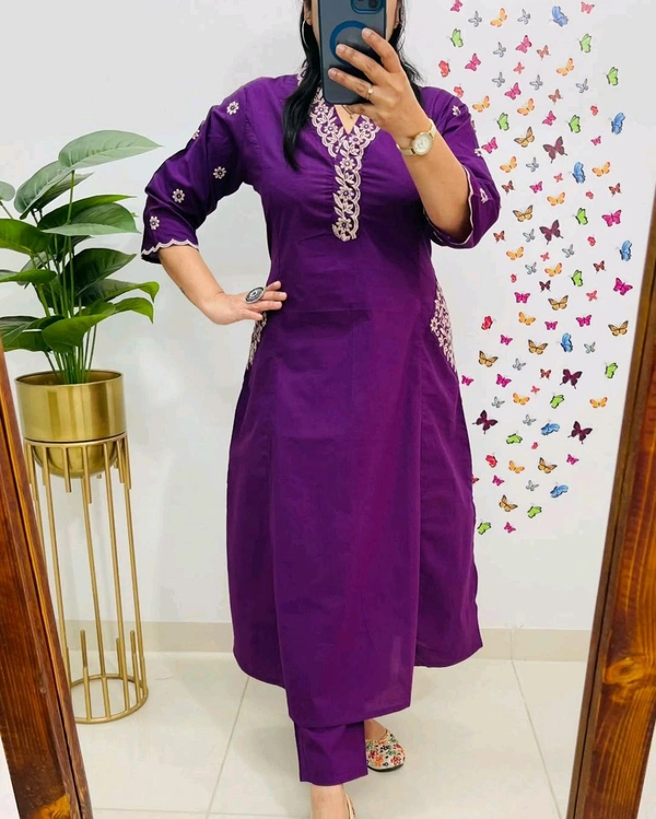 Designer Top Pant set in *Fine Cotton* With Heavy thread Embroidery work on the yoke & Both side Pockets...
