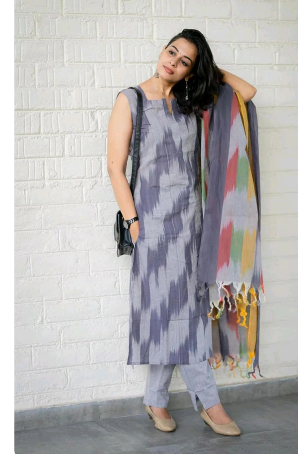*premium South cotton handloom kurti Paried with handloom cotton pants and dupatta*