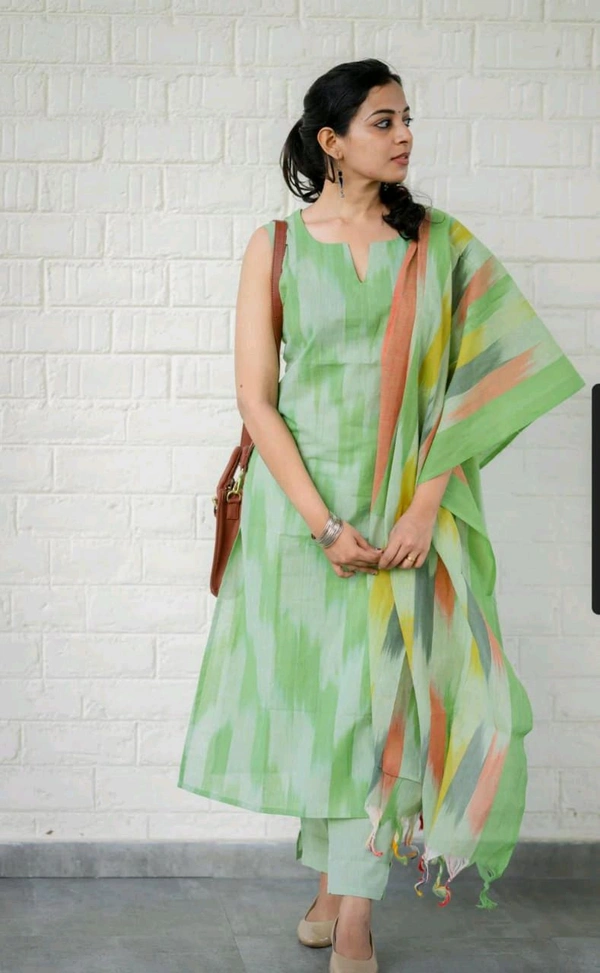 *premium South cotton handloom kurti Paried with handloom cotton pants and dupatta*