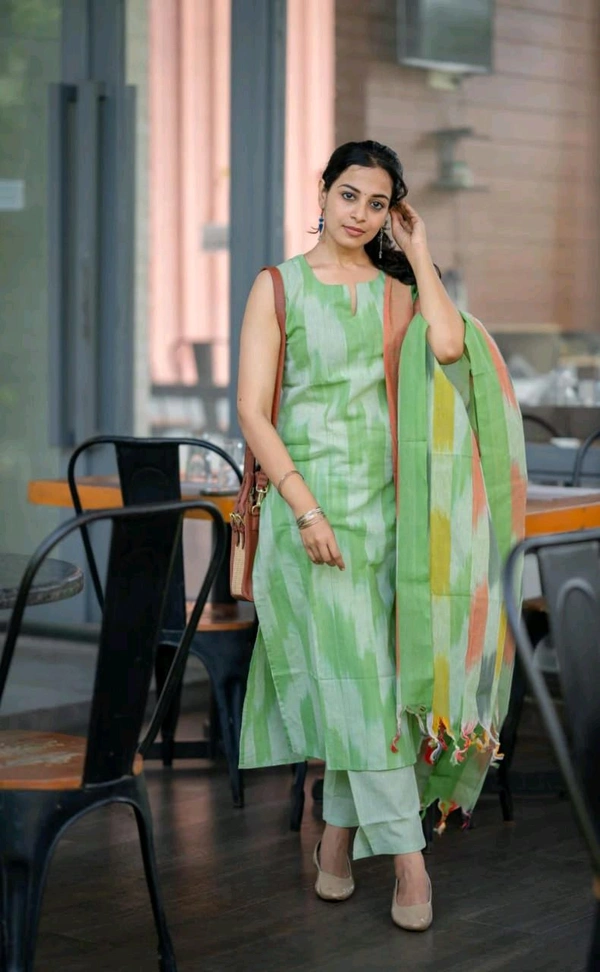 *premium South cotton handloom kurti Paried with handloom cotton pants and dupatta*