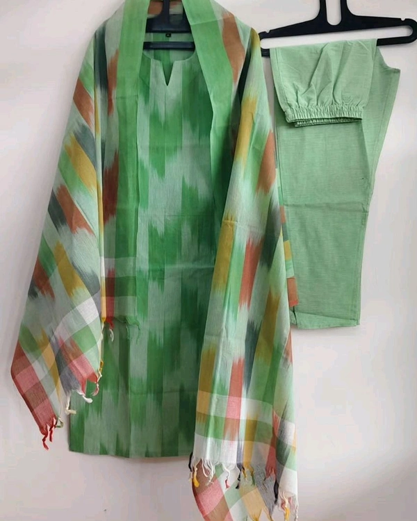 *premium South cotton handloom kurti Paried with handloom cotton pants and dupatta*