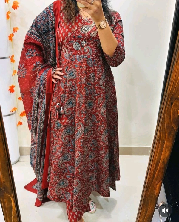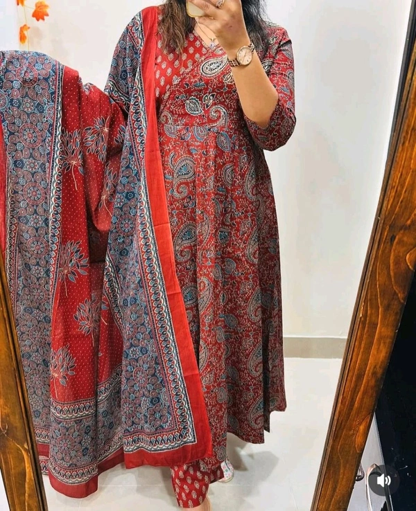5647 *New Anarkali Cotton kurta set with printed cotton kurta & pant or dupa hand work